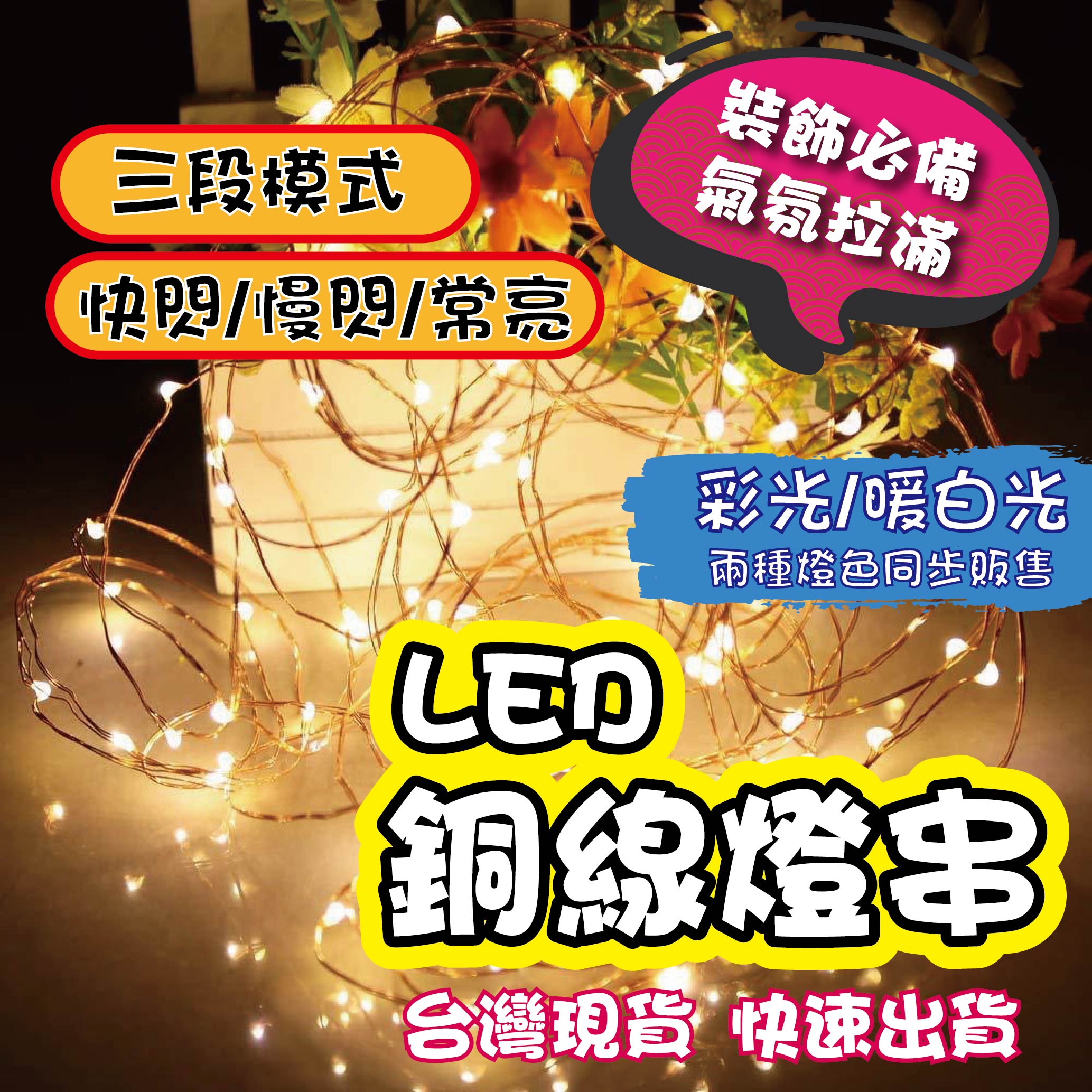 - 商品內容:LED銅線燈2米含電池(即開即用)
