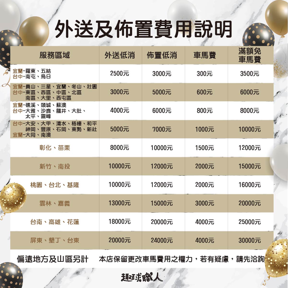 - 也許我們的套餐不符合您的需求,你也可以依自己的需求去氣球單品的項目下加購您想要的佈置,比如空飄氣球,客製波波球等,我們會在佈置當天一起幫您準備好哦。
